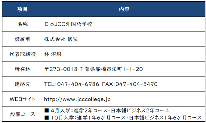 ◆日本JCC外国語学校の学則はこちら 日本JCC外国語学校学則